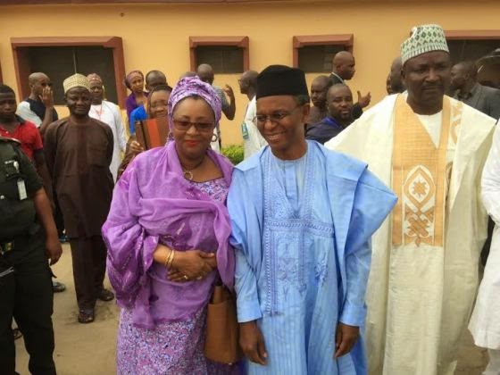 Nasir El-Rufai and his beautiful wife, Hadiza pictured arriving a polling booth in Kaduna State this morning