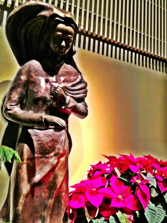 Sometimes, Jesus, you irritate the devil right on out of me. Like when you showed up as the crabby woman who will be 70 in two years and has lost a few pounds (and she praised your father loudly for in the sanctuary while I was on my knees trying to be holy enough to talk to you). When you plucked the flower out of the vase in front of the blessed Virgin Mary and put it in your hair it brought out the best in both of us.