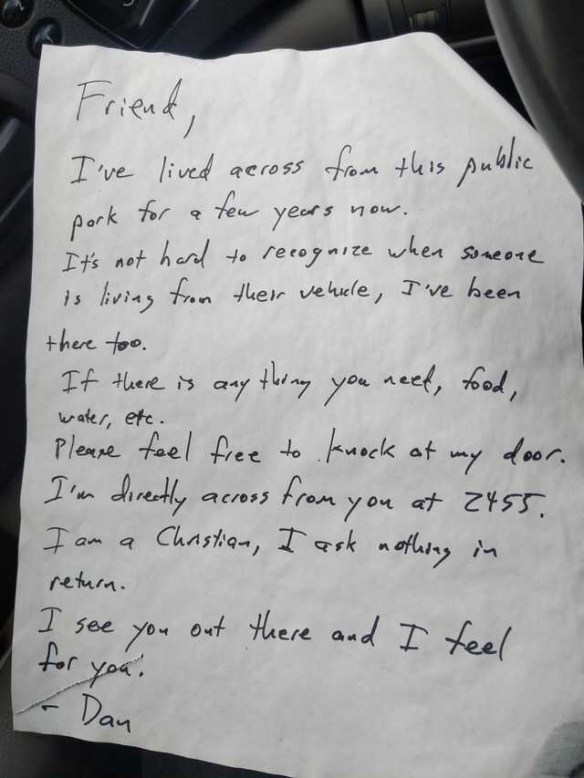 I live in my van. Found this on my windshield this morning. Posted on June 8, 2021 by Worldwide Prayer Point God Bless You Dan! Amen! Kindness Blog Via ryannefromTX – Reddit View original post Discover more from Worldwide Prayer Haven Subscribe to get the latest posts sent to your email. Type your email… Subscribe Share this: Share on Threads (Opens in new window) Threads Tweet Print (Opens in new window) Print Share on Reddit (Opens in new window) Reddit Share on TumblrPocket Share on Telegram (Opens in new window) Telegram Share on WhatsApp (Opens in new window) WhatsApp Email a link to a friend (Opens in new window) Email Like Loading... Related